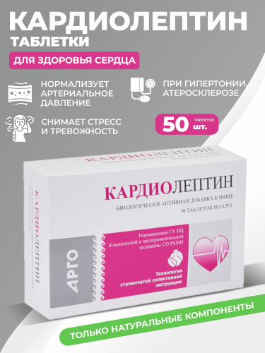Кардиолептин, способствует снижению артериального давления, таблетки, 50 шт АРГО ГЭСЭР, Апифарм
