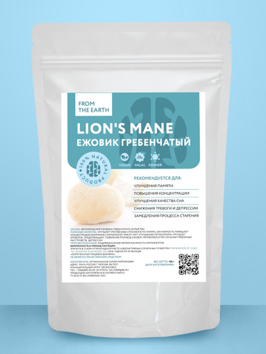 From The Earth Грибы сушеные Ежовик гребенчатый 100г. 1шт.