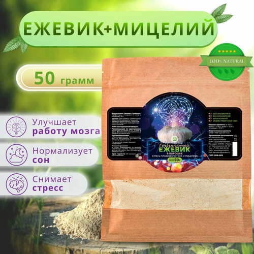 Ежевик (ежовик) гребенчатый + мицелий ежовика порошок 50 гр