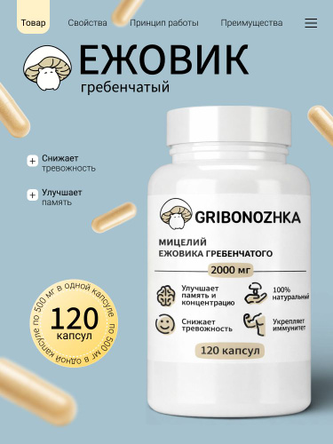 Ежовик Гребенчатый гриб ноотроп 120 капсул 450 мг