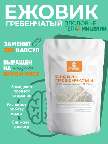 Ежовик(Ежевик) гребенчатый мицелий + плоды / Микродозинг 150 капсул (Lions mane, природный ноотроп, герициум)