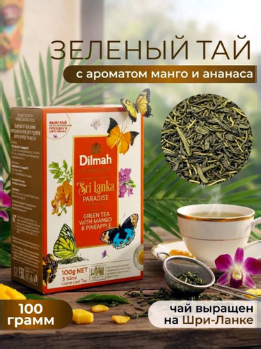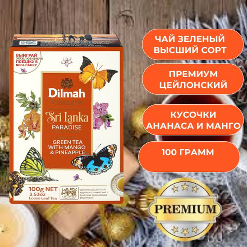 Чай зеленый Дилма cо вкусом ананаса и манго 100 грамм цейлонский элитный