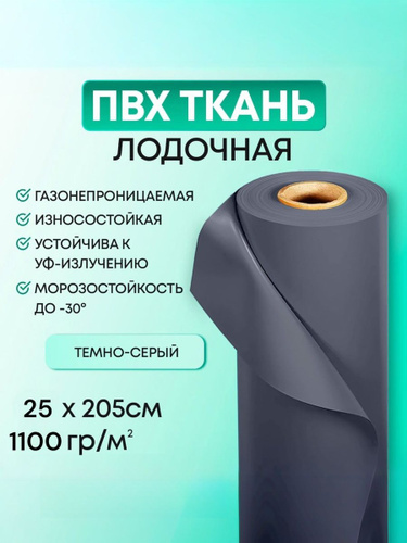 Армированная лодочная ткань ПВХ 1100 г/м Отрез 25х205 см Усиленная.Цвет:Темно-серый