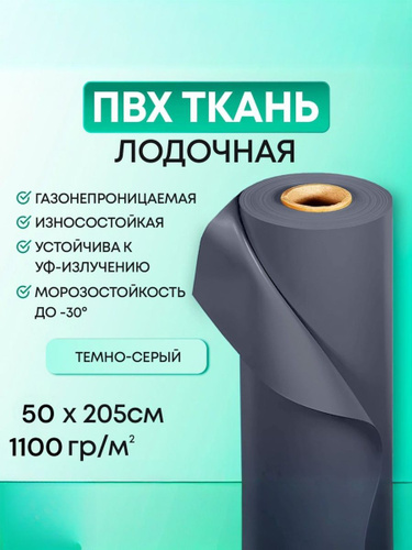Армированная лодочная ткань ПВХ 1100 г/м Отрез 50х205 см Усиленная.Цвет:Темно-серый