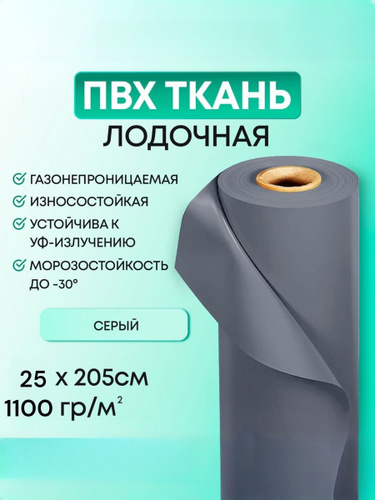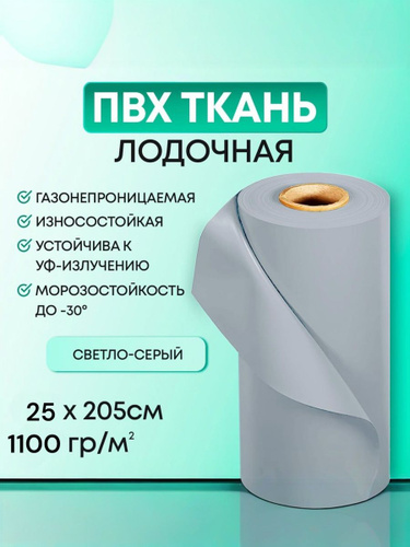 Ткань пвх лодочная Dejia 1100 гр/м2. Рез 25х205 см. Цвет: Серый, лента для ремонта и тюнинга лодок, бассейнов, матрасов, тентов и других изделий из ПВХ.