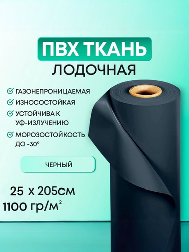 Ткань пвх лодочная Dejia 1100 гр/м2. Рез 25х205 см. Цвет: Черный, лента для ремонта и тюнинга лодок, бассейнов, матрасов, тентов и других изделий из ПВХ.