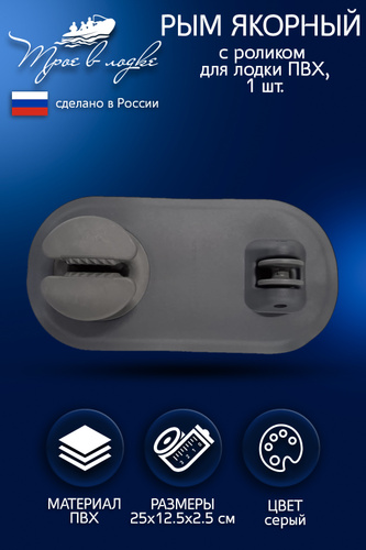 Якорный рым с роликом (роульсом) для лодки ПВХ, для фала/шнура диаметром 5-8 мм (серый)