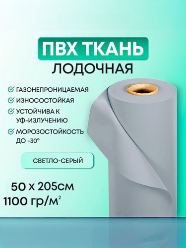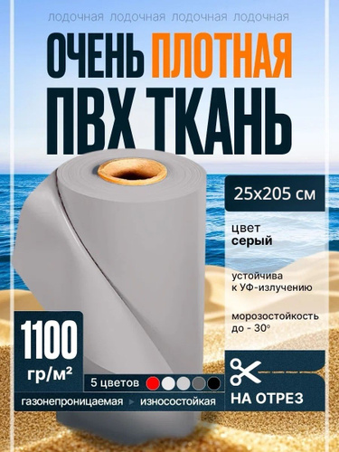 Армированная лодочная ткань ПВХ 1100 г/м Отрез 25х205 см Усиленная.Цвет:Светло-серый