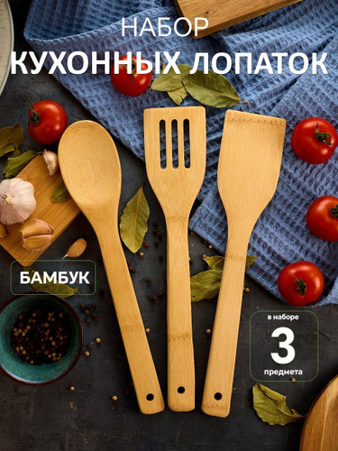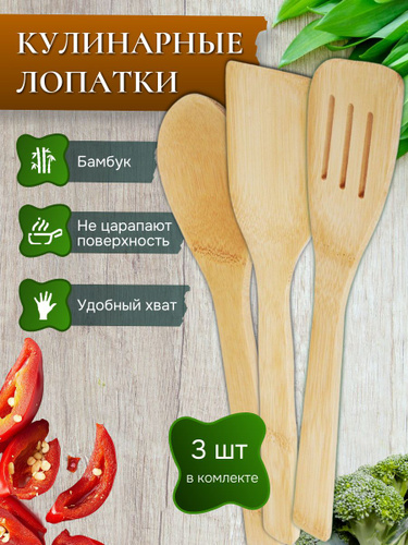 Лопатка кулинарная, бамбук, набор из 3-х штук