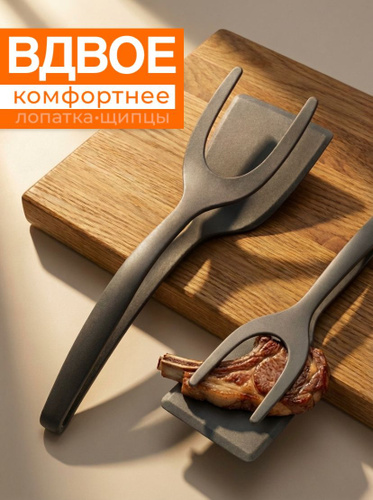 Лопатка-щипцы для сковороды кухонная, черный, 1 шт.