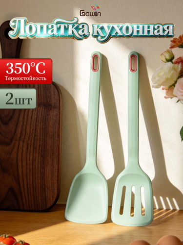 Лопатки силиконовые для кухни GawIn, набор 2 шт, термостойкие, для антипригарных сковород, можно мыть в посудомоечной машине, подарочный набо