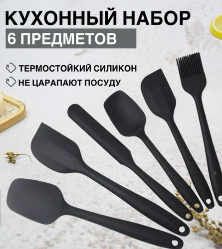 Лопатка силиконовая для кухни, набор черный