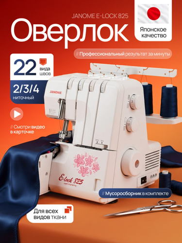 Оверлок Janome E-lock 825/ 22 вида швов / автоматическая обрезка края