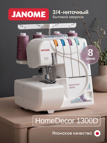 Janome Оверлок HomeDecor 1300D 3х ниточный, 4х ниточный, операций 8
