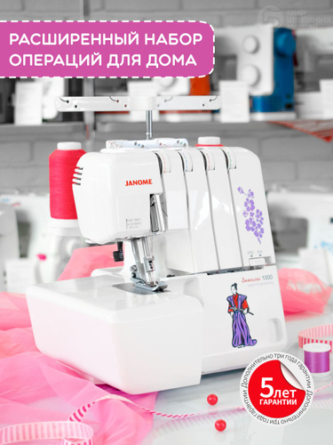 Оверлок Janome Samurai 1000 / 2-3-4 ниточный для всех тканей + ролевый шов и Flatlock / мусоросборник, 5 лет гарантия