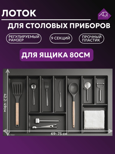 Лоток для столовых приборов в ящик 70см. Графит