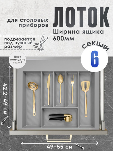 SLIGHT SCANDI Лоток для столовых приборов в ящик/модуль/шкаф 600 мм 60 см. Органайзер для столовых приборов. Жемчужно-серый. SLIGHT SCANDI
