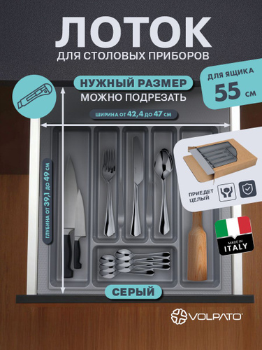 Лоток "VOLPATO" для кухонных принадлежностей ЕСО, 49 см х 47 см х 4,5 см, серый