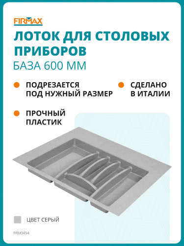 Лоток для столовых приборов Firmax Alpha в ящик/модуль/шкаф 600мм/60см, органайзер для столовых приборов, серый