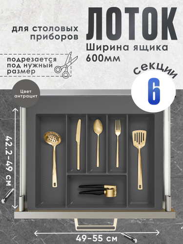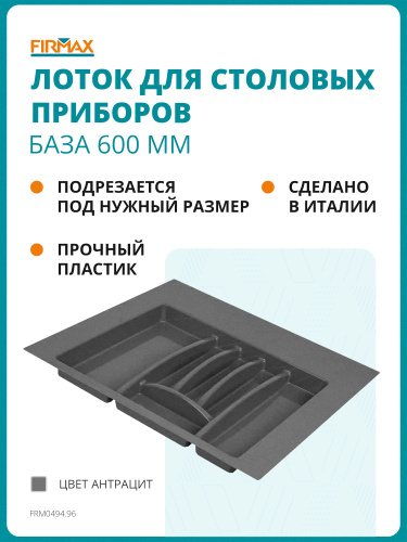 Лоток для столовых приборов Firmax Alpha в ящик/модуль/шкаф 600мм/60см, органайзер для столовых приборов, антрацит
