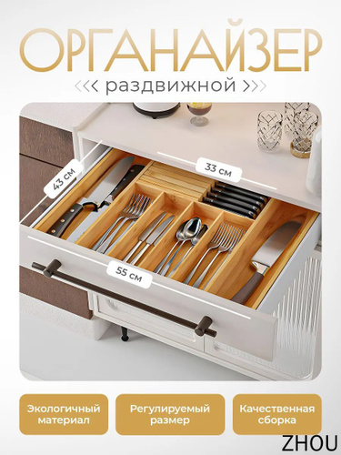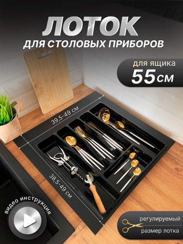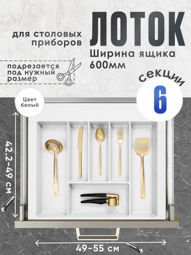 Лоток для столовых приборов в ящик/модуль/шкаф 550 мм 55 см. Органайзер для столовых приборов.