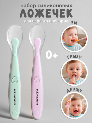 Ложка для кормления новорожденных детская KUNDER ложечка для прикорма силиконовая, 2 шт