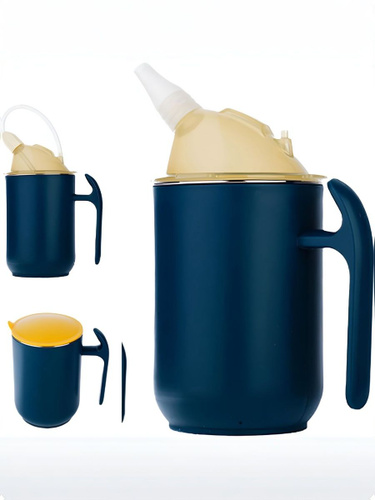 ACDANC Чашка с двойными крышками, 400 мл, антипроливная система, для пожилых людей и инвалидов, эргономичная ручка.