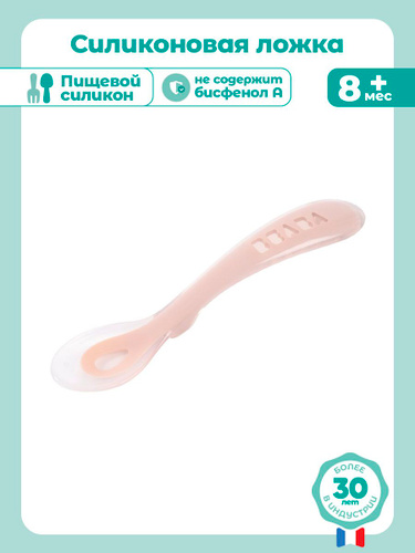 BEABA ложка для кормления с 8 месяцев детская, ложечка для прикорма силиконовая для ребенка