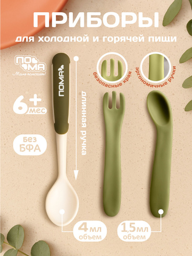 Приборы для первого прикорма - ложка и вилочка и ложечка 1 шт 6+ зеленый