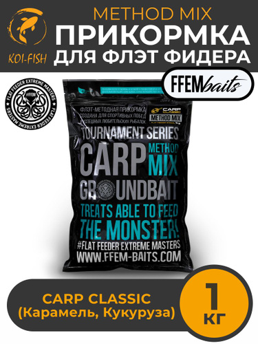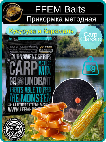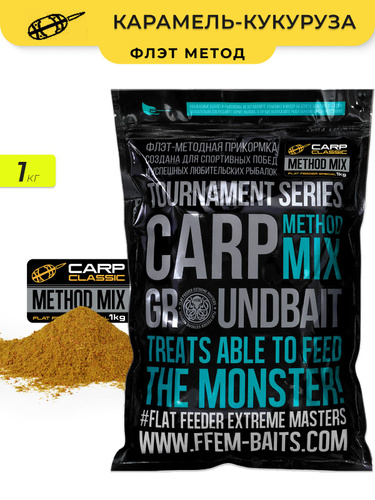 FFEM METHOD MIX Carp Classic 1 кг (карамель и сладкая кукуруза)Прикормка для ловли карпа, Метод Микс, Флэт фидер, Flat Feeder, Бойлы вареные