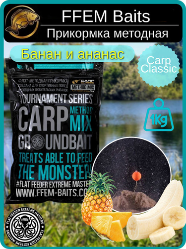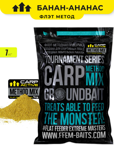 FFEM METHOD MIX Carp Active 1 кг (Банас и Ананас) Прикормка для ловли карпа / Метод Микс / Флэт фидер Flat Feeder, Zip-lock пакет