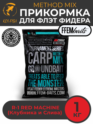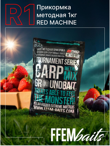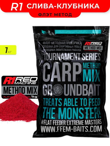Прикормка карповая методная FFEM Method Mix R-1 Red Machine Flat-Method красного цвета с ароматом клубники и сливы.