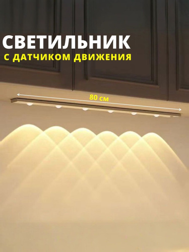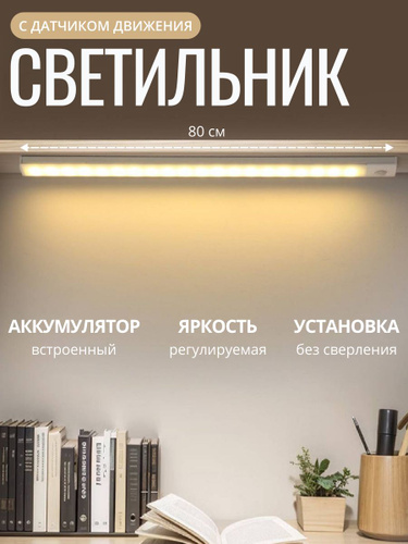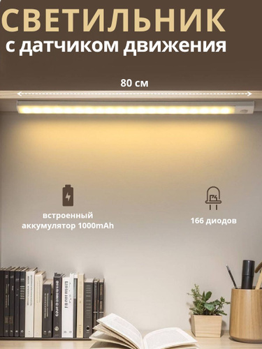 Беспроводной светодиодный светильник с датчиком движения на клипсах, настенный, потолочный, 800 мм, лампа на аккумуляторе (белый 3000-6000К)