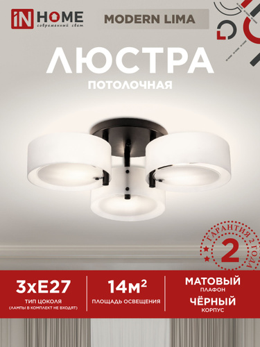 Люстра потолочная под лампу цокольE27 MODERN LIMA-CL-3E27-BL 3хЕ27 белый плафон, черный IN HOME