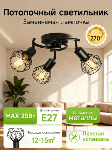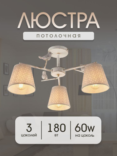 Люстра подходит для гостиной и кухни. В ней используются лампочки E27