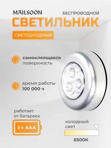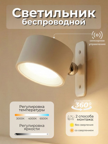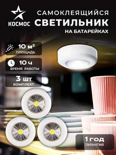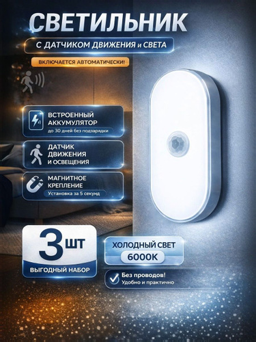 Светильник с датчиком движения беспроводной светодиодный на магнитном креплении, настенный, потолочный, лампа на аккумуляторе, 6000К, 3 шт