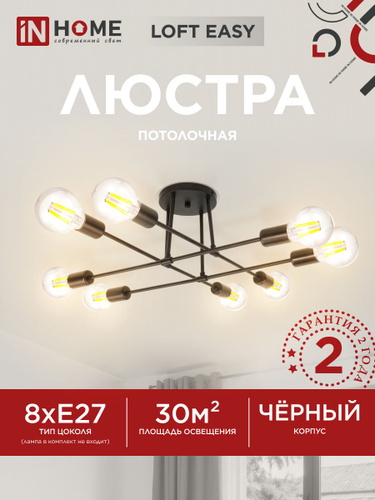 Люстра потолочная под лампу 8хЕ27 металл LOFT EASY-8E27-BL 8хЕ27 черный IN HOME