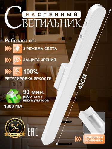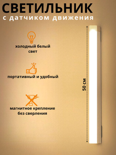 Светильник светодиодный беспроводной на магните с пультом дистанционного управления 55 СМ ДЛИНА УВЕЛИЧЕНА