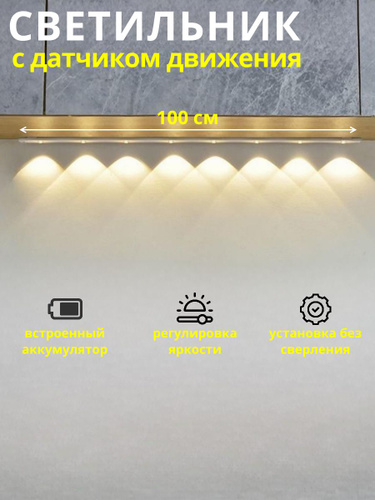 Беспроводной светодиодный светильник с датчиком движения на клипсах, настенный, потолочный, 1000 мм, лампа на аккумуляторе (белый 3000-6000К)