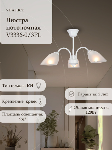 Люстра Vitaluce V3325/3, 3хE14 макс. 40Вт белый глянец