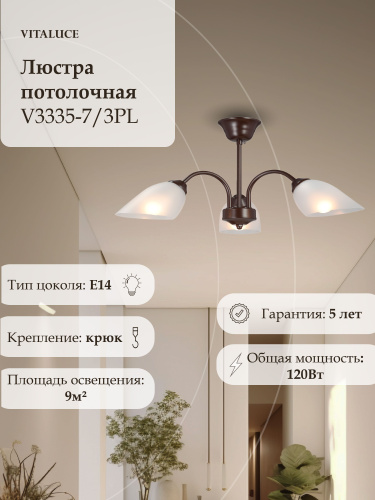 Люстра потолочная Vitaluce V3335-7/3PL, 3 лампы, E14 макс. 40Вт, 9м2, цвет коричневый матовый, плафон пластик
