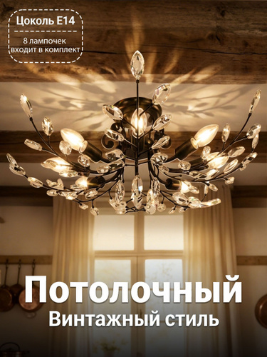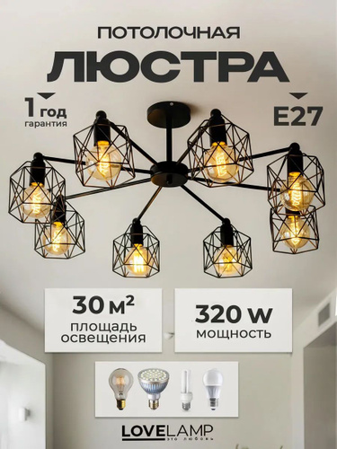 Люстра потолочная подвесная Лофт светильник на кухню, в гостиную и спальню, зал, цоколь E27, регулировка длины