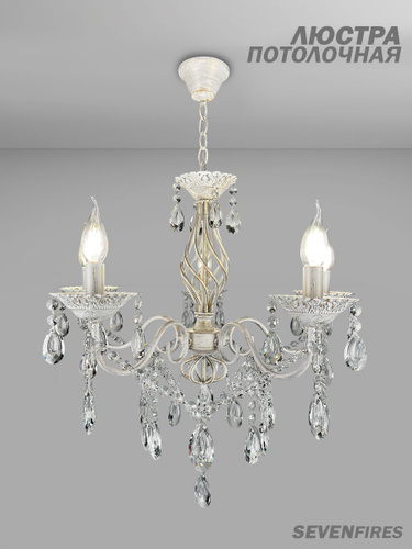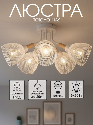 Люстра Балтийский Светлячок скандинавский стиль, 6 рожков, белая/золотая, для зала, кухни и гостиной