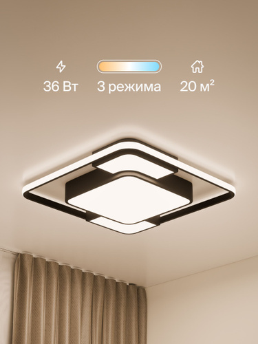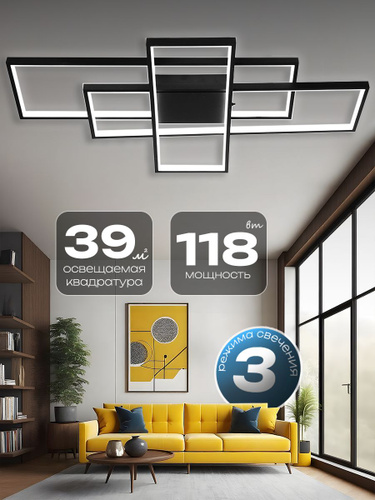 Люстра потолочная светодиодная в зал Ritter квадратная, 118Вт / Диммируемая, для 25 м.кв.