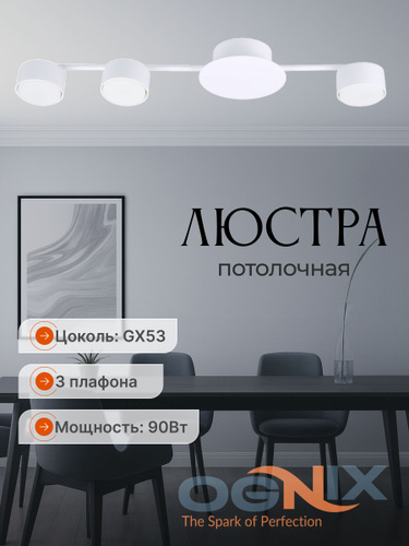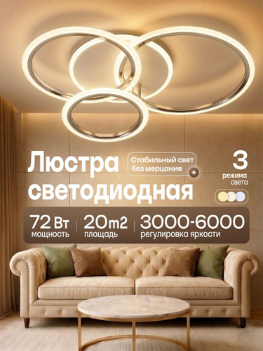 Люстра потолочная светодиодная Ritter в зал, гостиную / Диммируемая, 4 режима, 100Вт