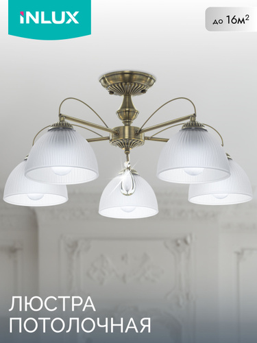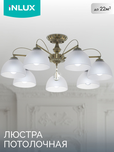 Потолочная люстра 7 рожков E27, классическая бронза, матовые рифлёные плафоны, люстра в гостиную, спальню, кабинет, кухню, зал, INLUX LETRA IN40273