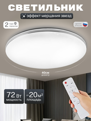 Люстра потолочная светодиодная с пультом, Ritter в зал, в гостиную, в спальню / Диммируемая, 4 режима