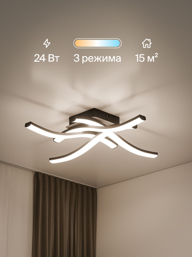 Светодиодная потолочная люстра волна 24Вт с пультом управления, светильник LED в спальню для зала и кухни