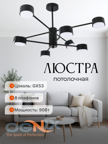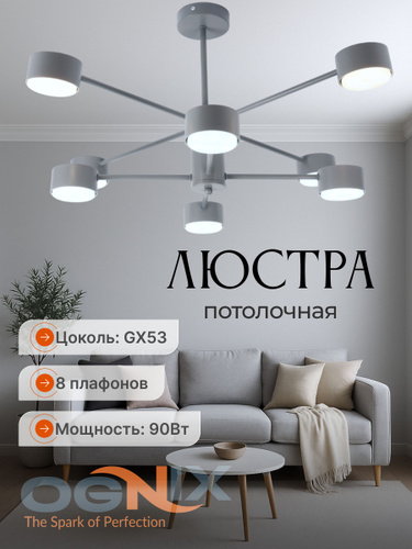 Люстра потолочная, светильник в зал, на кухню в спальню или детскую, металлический корпус в стиле лофт. 8 ламп цоколь GX53
