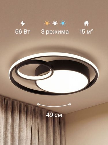 Светодиодная потолочная люстра, светильник 56Вт LED в спальню для зала и кухни